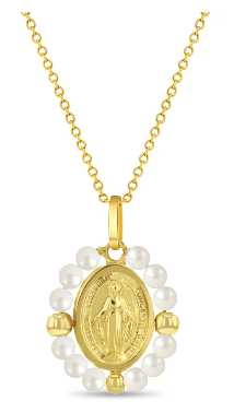 14k Miraculous Virgin Mary Pearl PendantHypoallergenic 14k Gold (nickel-free)