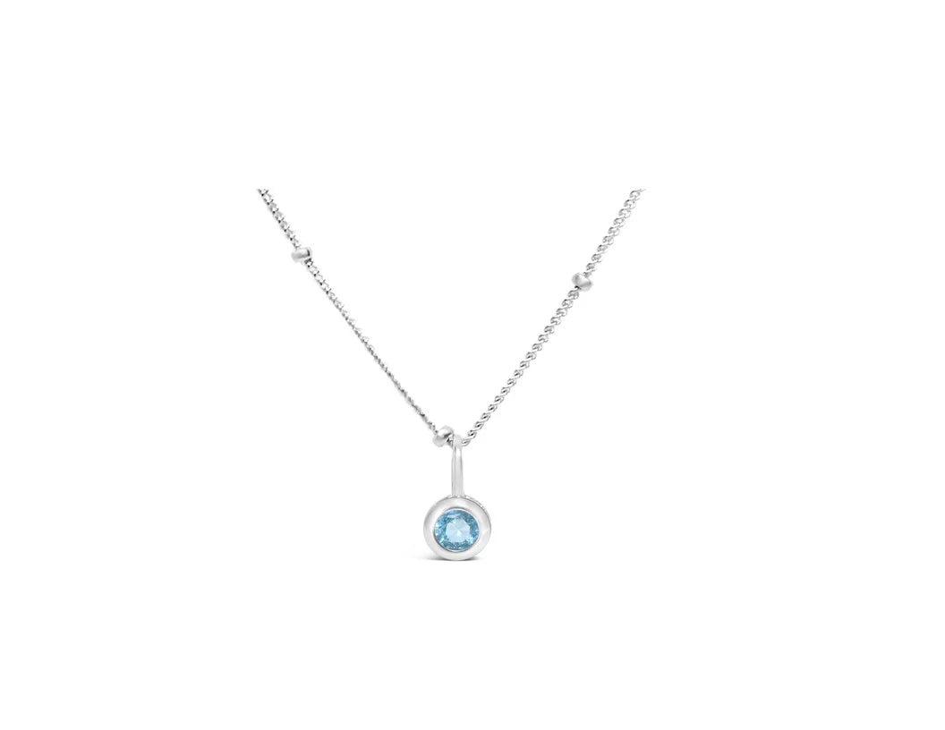 Aquamarine CZ March Birthstone/ Silver Necklace