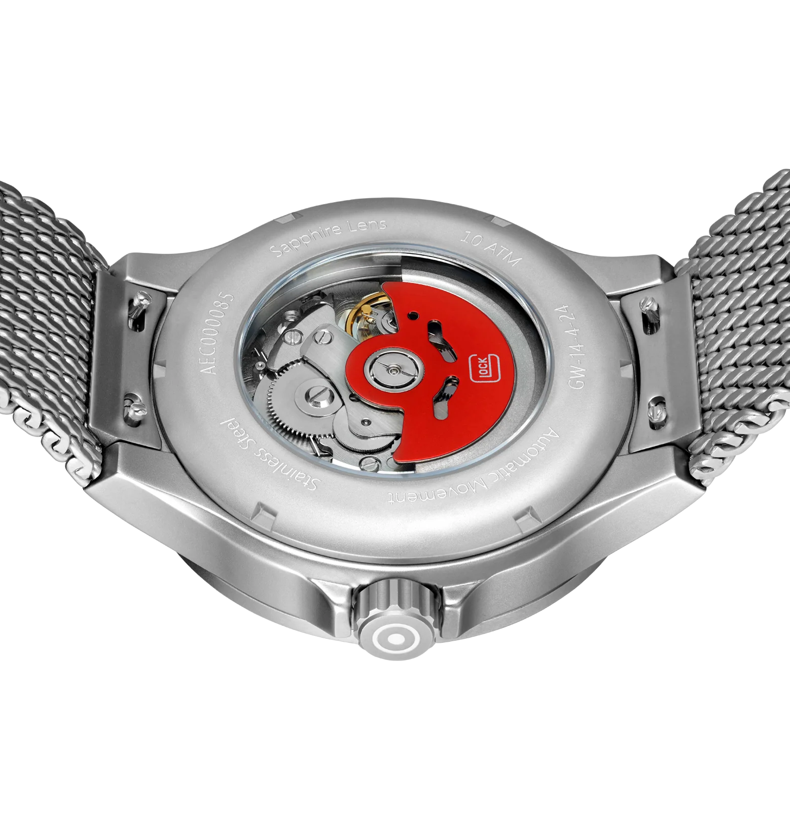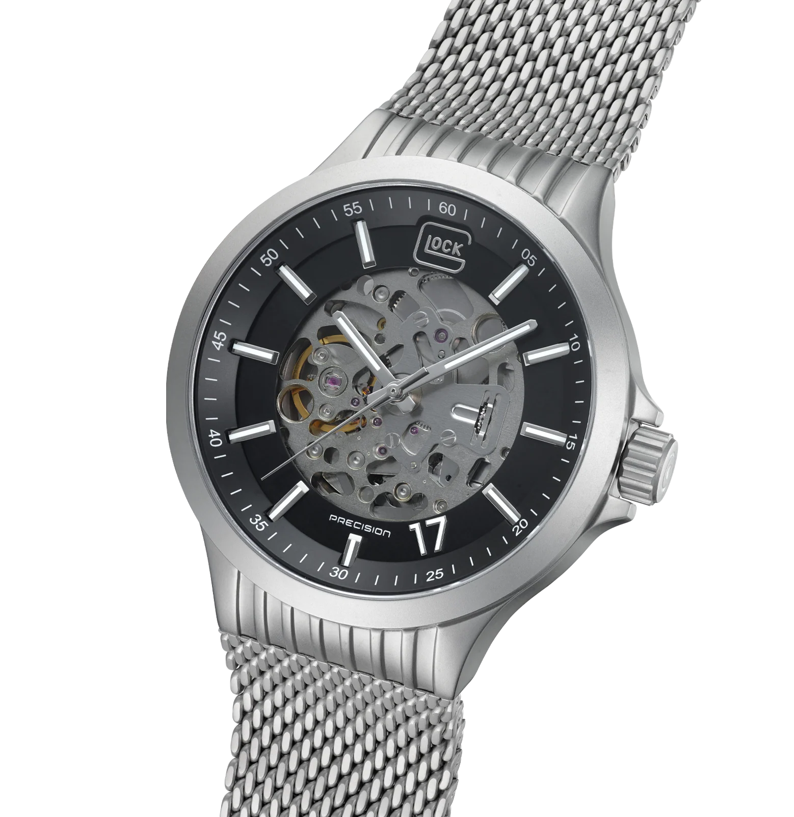 GW-14-4-24 10 atm water resistance, Automatic movement, Sapphire crystal, Swiss super-luminova®This timepiece showcases a sandblasted stainless steel case. Its skeletonized dial takes center stage, adorned with hands and indices featuring Swiss Super-LumiNova®. The appealing design is accentuated by a elegant mesh strap. Driven by an automatic movement and rated to 10 ATM water resistance, this watch guarantees consistent accuracy and reliability.Case Color: Silver-ToneStrap Color: Silver-ToneCase Material: Stainless SteelCase Thickness: 13.0 mmCase Diameter: 44 mmDial Color: BlackProduct Weight: 6.6 ozMovement Type: AutomaticStrap Material: SiliconeStrap Size: 200mmType of Clasp: Folding Clasp