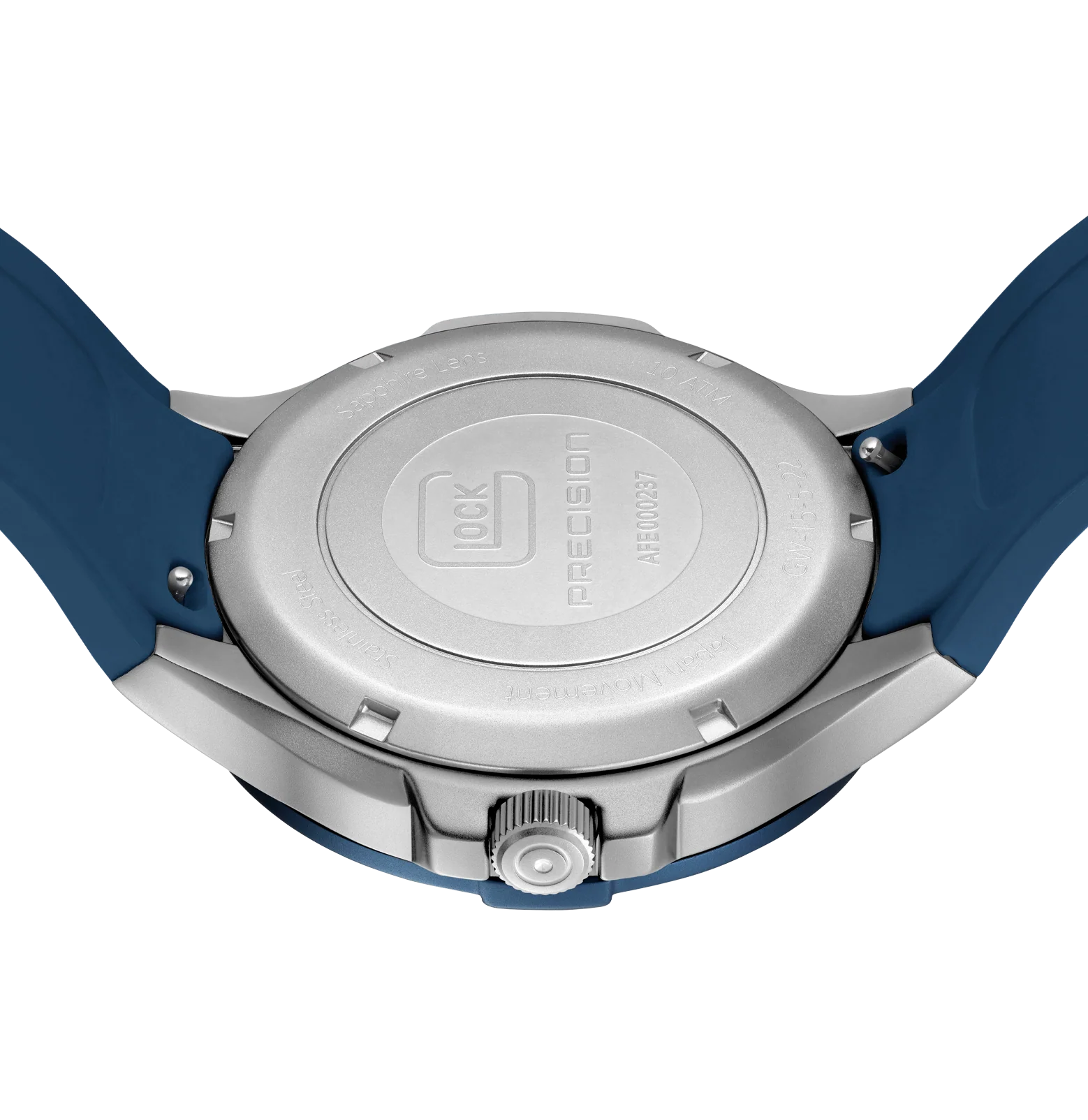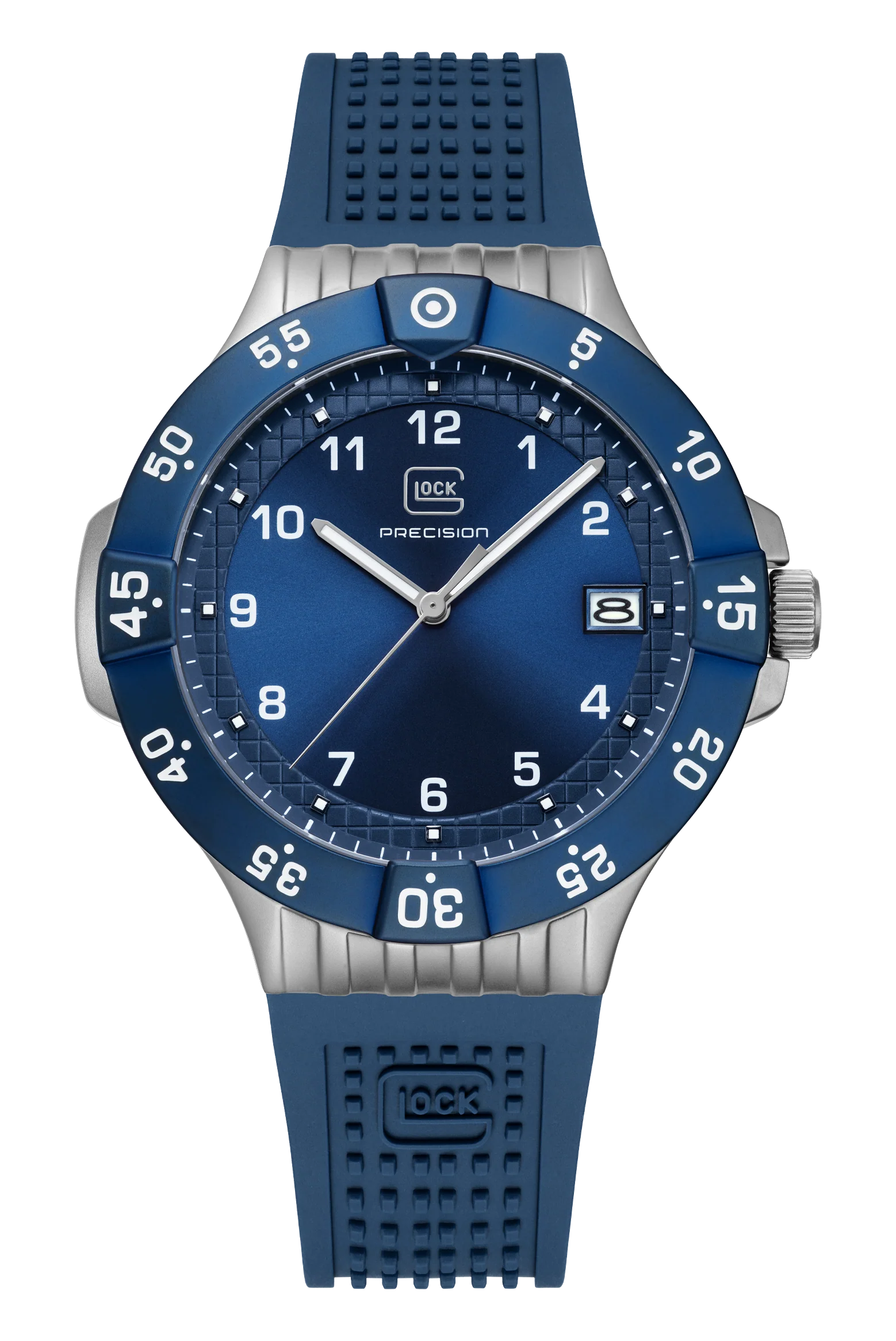 GW-15-5-22 10 atm water resistant, Sapphire crystal, Rotating bezel, Swiss super-luminova®Bridging traditional craftsmanship with contemporary touches, the GW-15-5-22 stands as a visual masterpiece. Housed in a sandblasted silver-toned stainless steel case, its deep blue metal dial gleams, illuminated by Swiss luminous hands. A GLOCK RTF-structured blue silicone strap gracefully encircles the wrist. Boasting a 10 ATM water resistance, this watch embodies durability, resilience, and enduring elegance.Case Color: Dark BlueStrap Color: Dark Blue Case Material: Stainless Steel Case Thickness: 11.7 mm Case Diameter: 43 mm Dial Color: Blue Product Weight: 3.84 oz Movement Type: Japanese MovementStrap Material: SiliconeStrap Size: 200mmType of Clasp: Folding Clasp