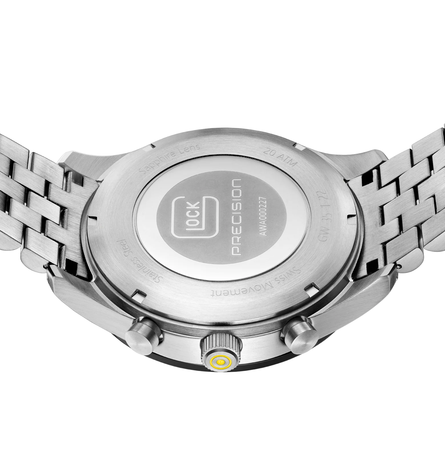 GW-35-1-22 20 atm water resistance, Sapphire crystal, Swiss movement, Chronograph, Swiss super-luminova®Combining durability with elegance, this watch showcases a brushed silver-tone stainless steel case with a polished black bezel. The stainless steel link strap fits seamlessly into this color scheme. Hands and indices with Swiss Super-LumiNova® ensure clear readability, while the Swiss movement and a 20 ATM water-resistance rating ensure precision and reliability. Case Color: Silver-ToneStrap Color: Silver-ToneCase Material: Stainless SteelCase Diameter: 46 mmDial Color: BlackMovement Type: Swiss MovementStrap Material: Stainless Steel LinkType of Clasp: Butterfly Clasp