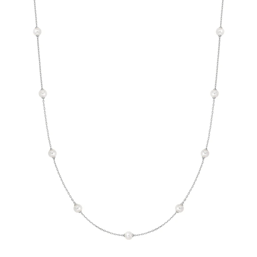 Miss Dainty Silver Shell Pearl Station Chain Necklace