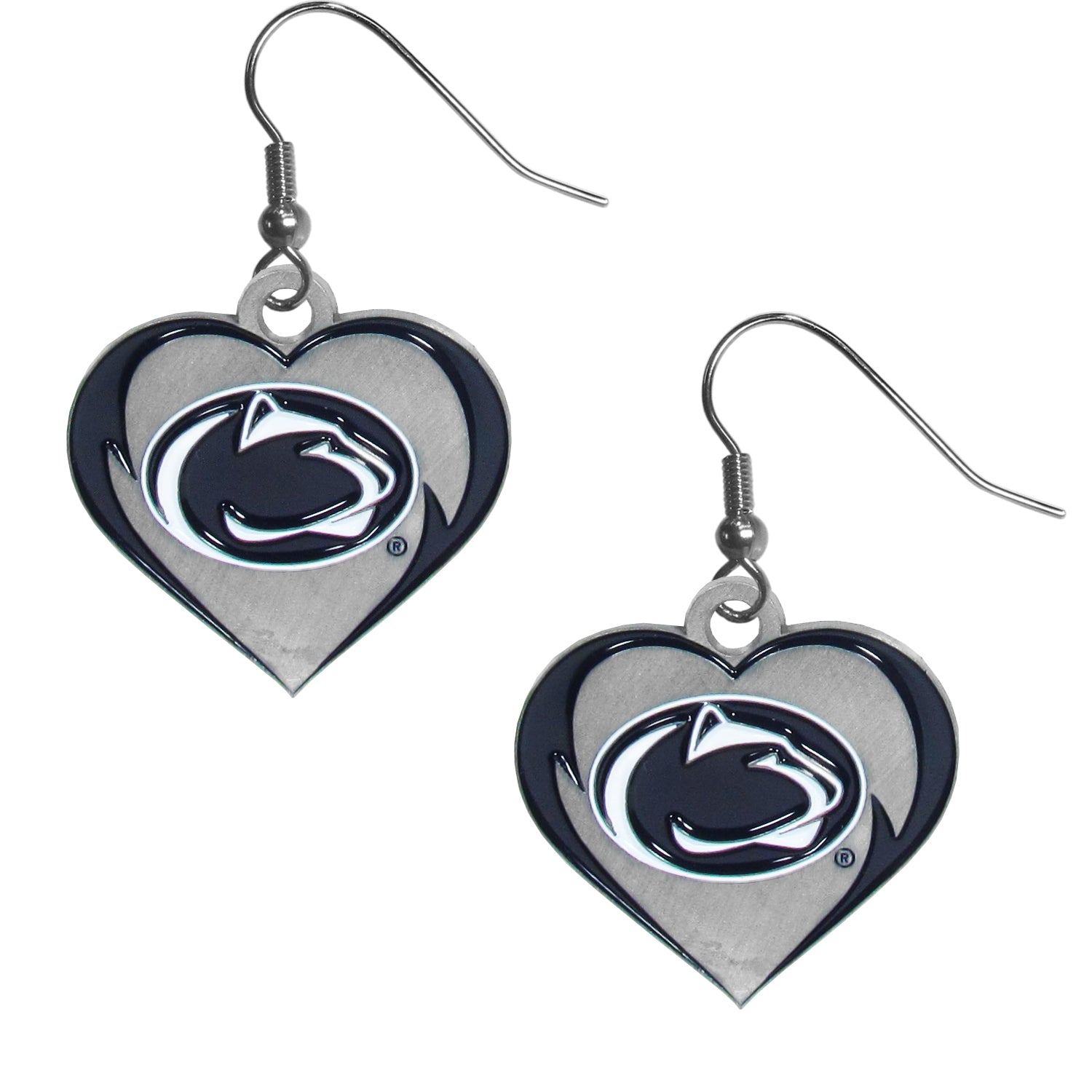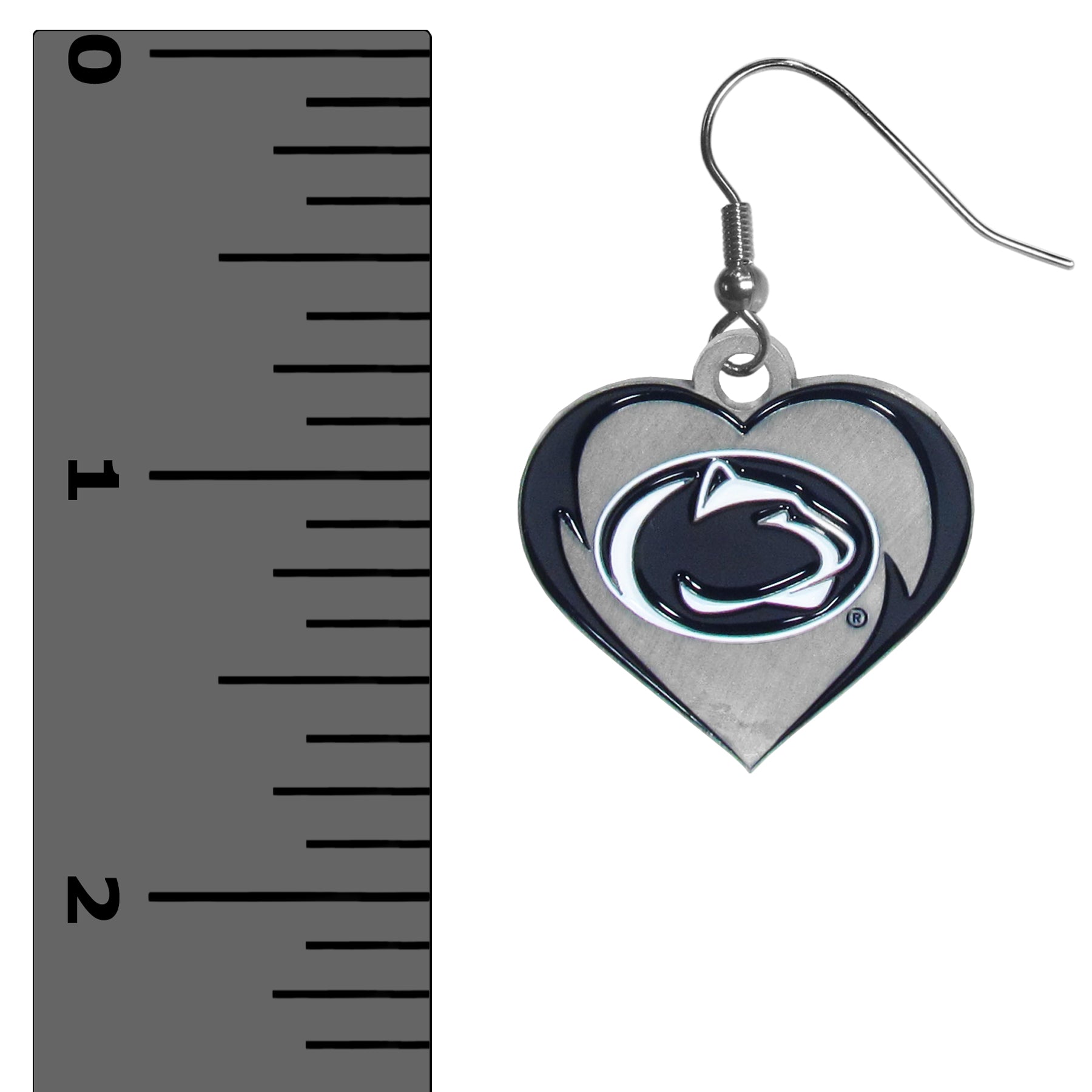 Description: These bold heart earrings have 1 1/8 inch heart charms on hypoallergenic fishhook posts. The charms feature a fully cast Penn St. Nittany Lions logo with expertly enameled detail and a beautiful enameled swirl finish. A perfect addition to any fan's jewelry collection. Features: Officially licensed College product Charm is 1 1/8 from top to bottom The fishhook posts are nickel free and hypoallergenic The charm features expertly enameled team colors A beautiful addition to any Penn St. Nittany Lions fan's jewelry collection Weight: 0.05 lbs. Width: 4.25 in. Length: 2.50 in. Height: 0.25 in.