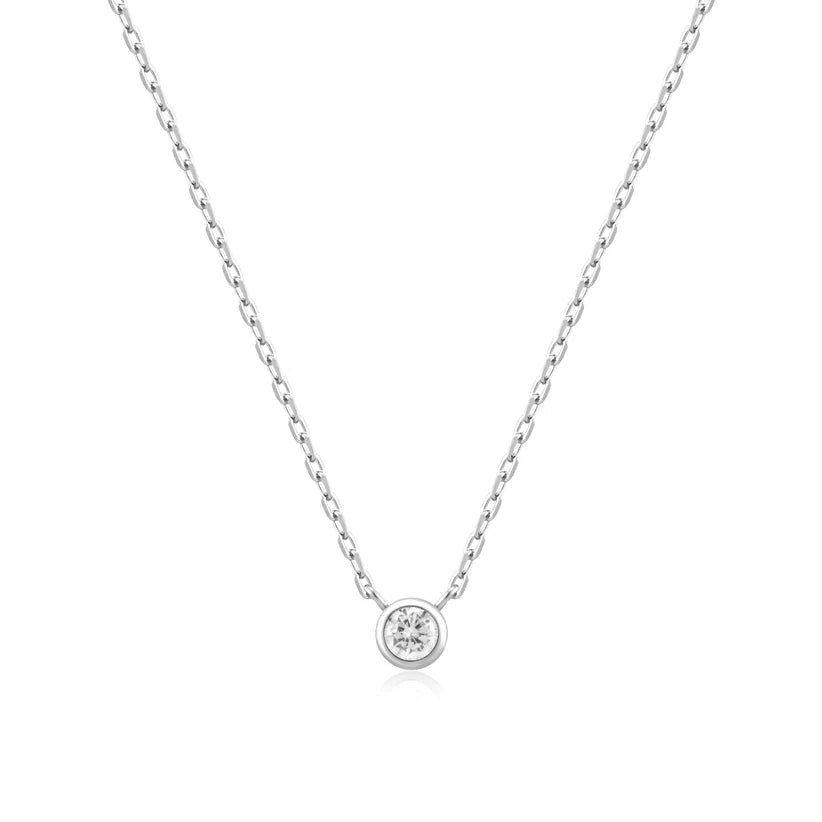 Sunshine Chaser Silver Round Solitaire CZ Necklace