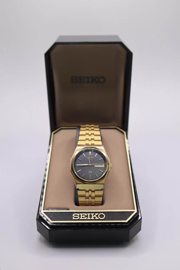 Vintage 1986 Seiko 8C23-6059 Gold-Tone Day/Date Watch in Original Box
