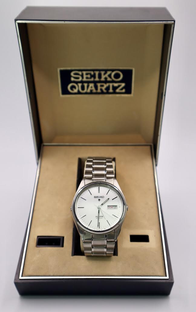 Vintage Seiko Alarm Quartz Watch – Silver-Tone Case & Bracelet, Day/Date Window
